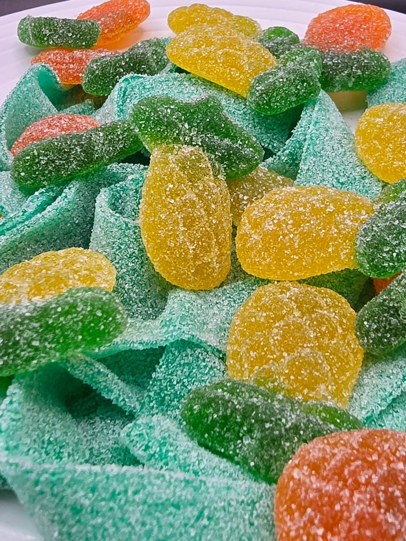 Something sweet has taken a sour turn. Tart pineapple gummies and crisp apple belts come together in a combo that feels familiar—but not everything is as it seems.